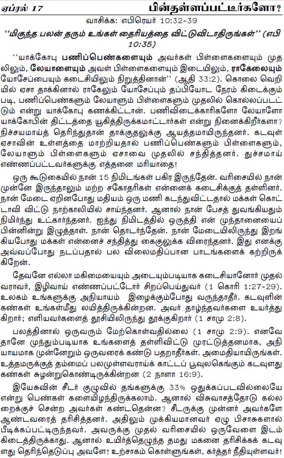 நாம் ஜெபிக்கவேண்டும்தான். அனால் இரன்டு காரணங்களுக்காக நாம் சோதிக்கப்படும்படி தேவன் அனுமதிக்கிறார் more...